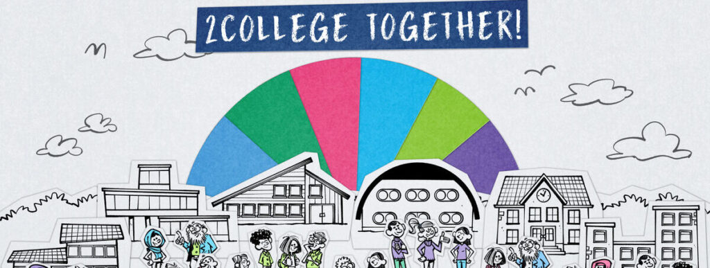 2College is een groep van scholen met onderwijs voor vmbo, havo en vwo en maakt deel uit van de vereniging Ons Middelbaar Onderwijs (OMO). Met zes unieke vestigingen biedt 2College een breed onderwijspalet aan, waardoor er voor elke leerling in Tilburg en omgeving iets te kiezen valt. Met een verwijzing naar onze naam nodigen we leerlingen, ouders en medewerkers uit. Let’s go 2College luidt de uitnodiging.